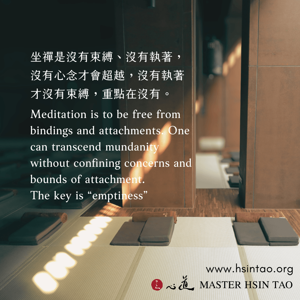 坐禅是没有束缚、没有执着,没有心念才会超越,没有执着才没有束缚,重点在没有。