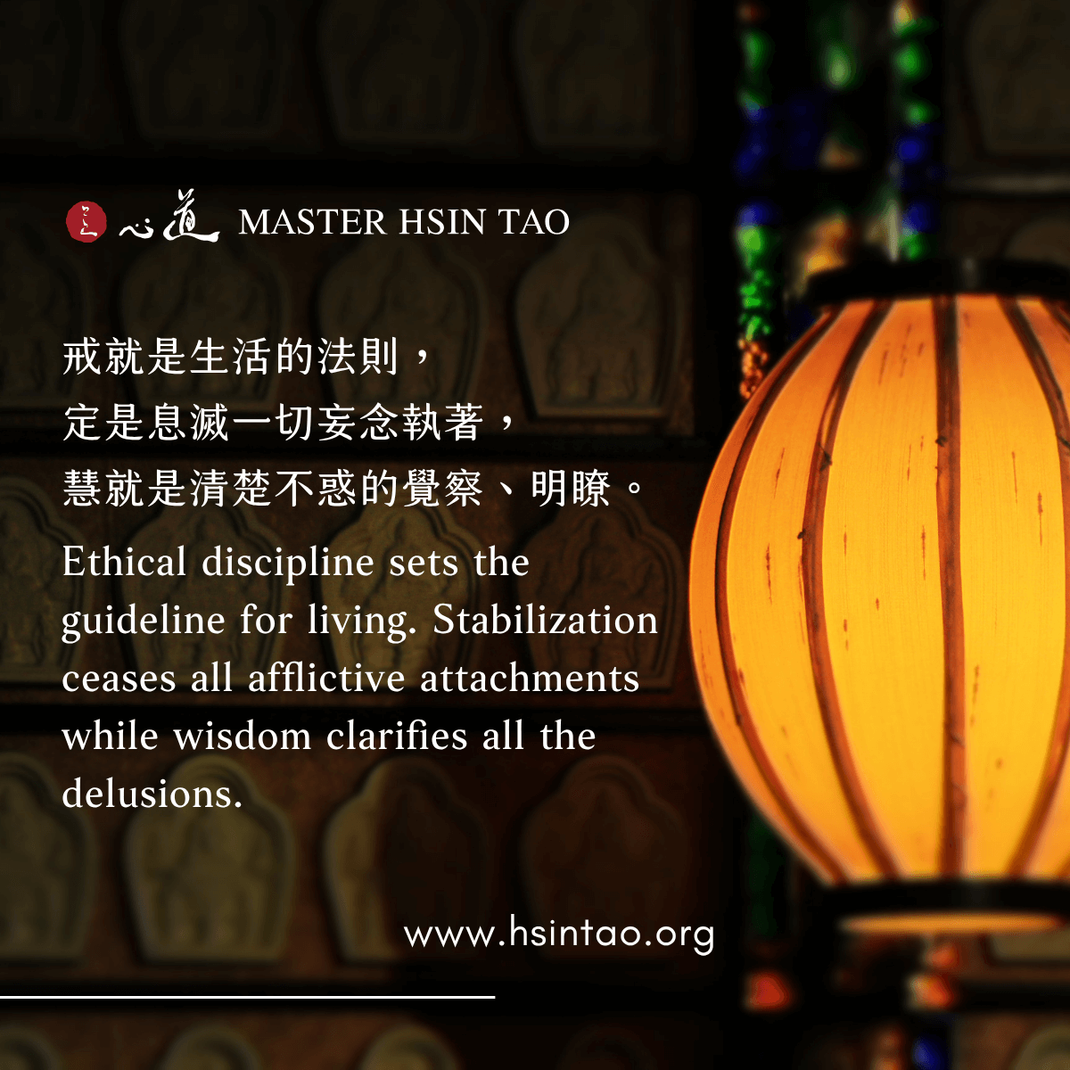 戒就是生活的法則,定是息滅一切妄念執著,慧就是清楚不惑的覺察、明瞭。