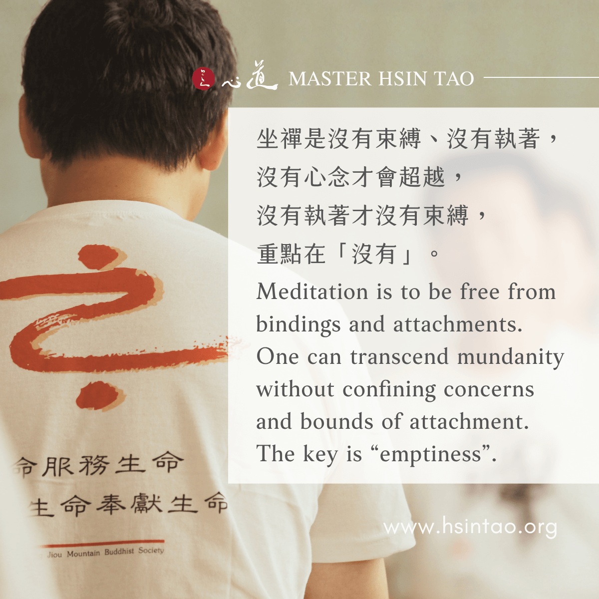 坐禅是没有束缚、没有执着,没有心念才会超越,没有执着才没有束缚,重点在「没有」。