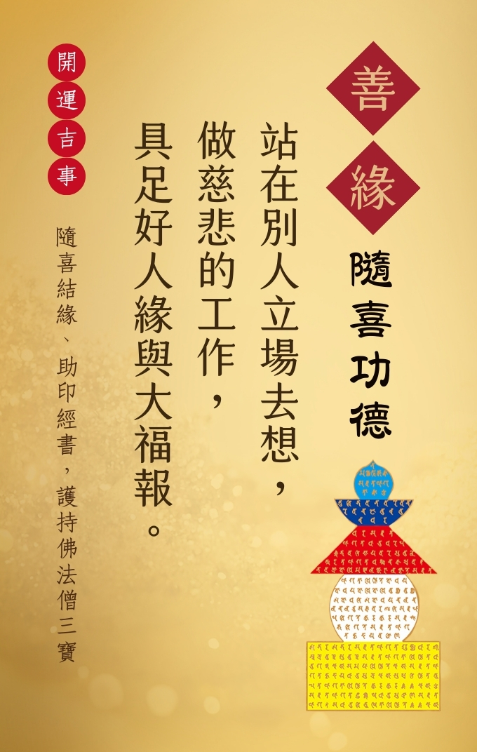 站在别人立场去想,做慈悲的工作,具足好人缘与大福报。