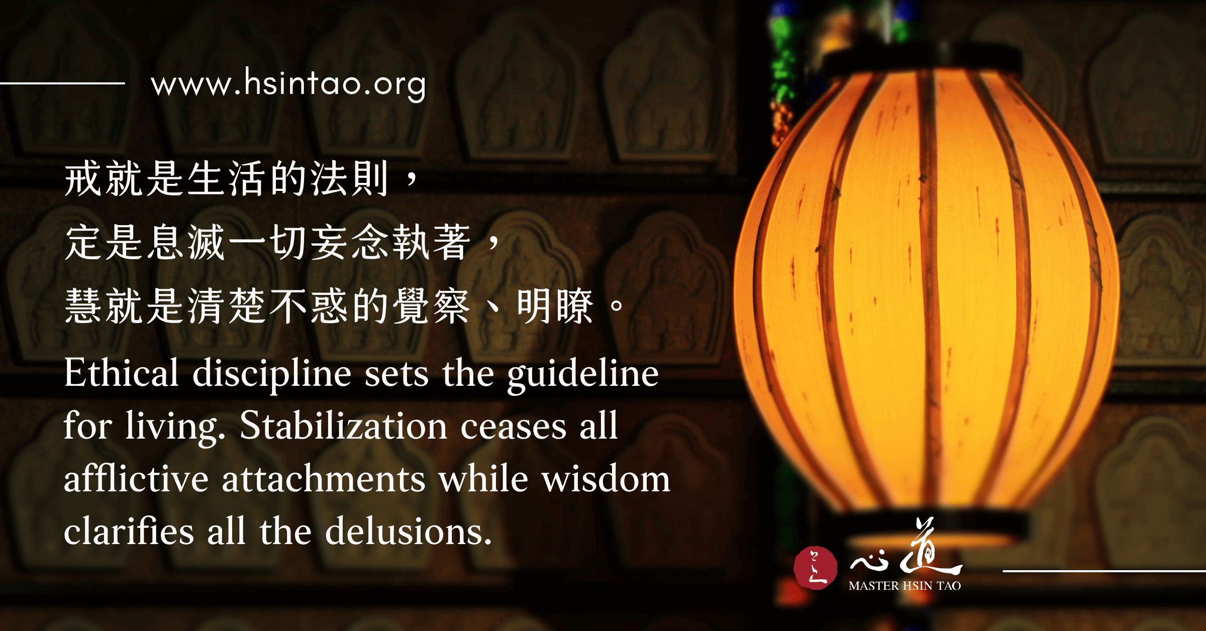 戒就是生活的法則,定是息滅一切妄念執著,慧就是清楚不惑的覺察、明瞭。