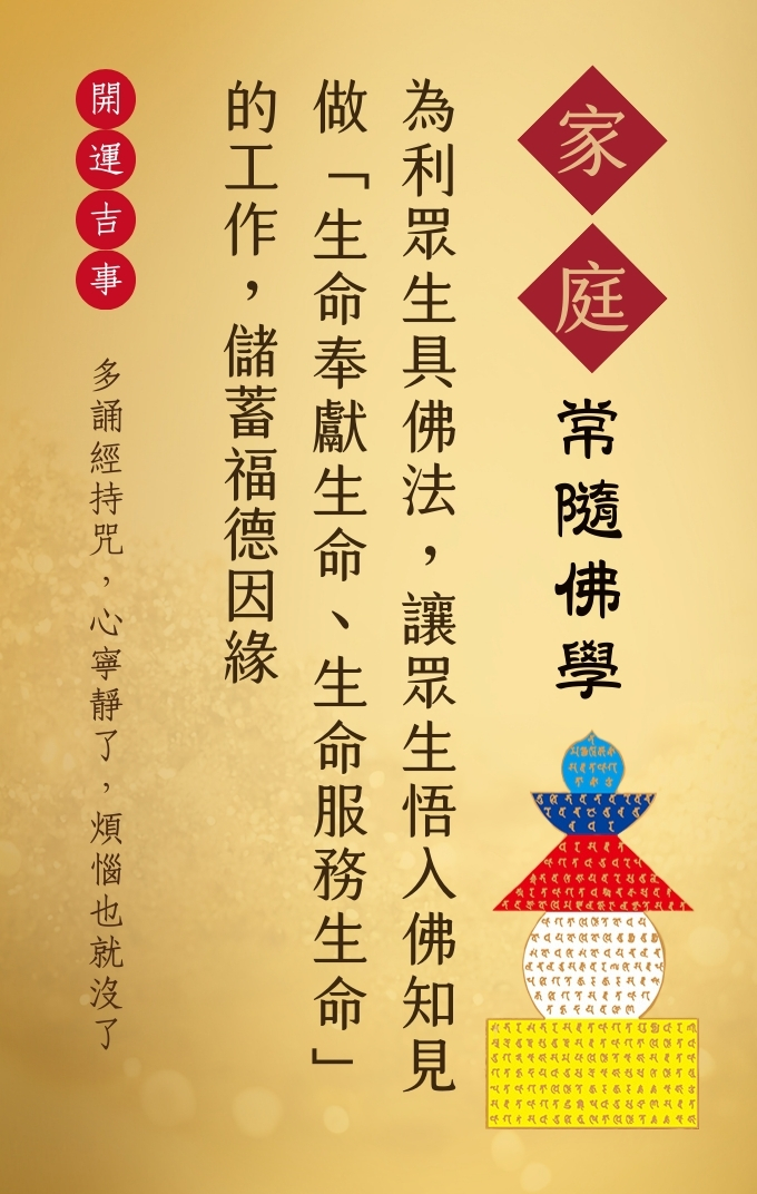 為利眾生具佛法,讓眾生悟入佛知見做「生命奉獻生命、生命服務生命」的工作,儲蓄福德因緣。