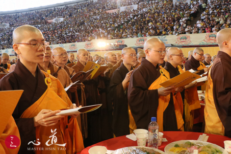 這天又到了水陸法會送聖圓滿的時刻。感謝南傳的尊者、大阿闍黎、藏傳的仁波切、堪布、漢傳的大和尚慈悲護念,所有主法和尚及法務法師的用心,以及靈鷲山常住法師、同仁、志工菩薩的辛勞,還有所有功德主的護持,社會賢達的參與,共同成就法會的莊嚴,圓滿這場大普施、大學習、大共修。